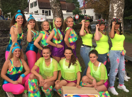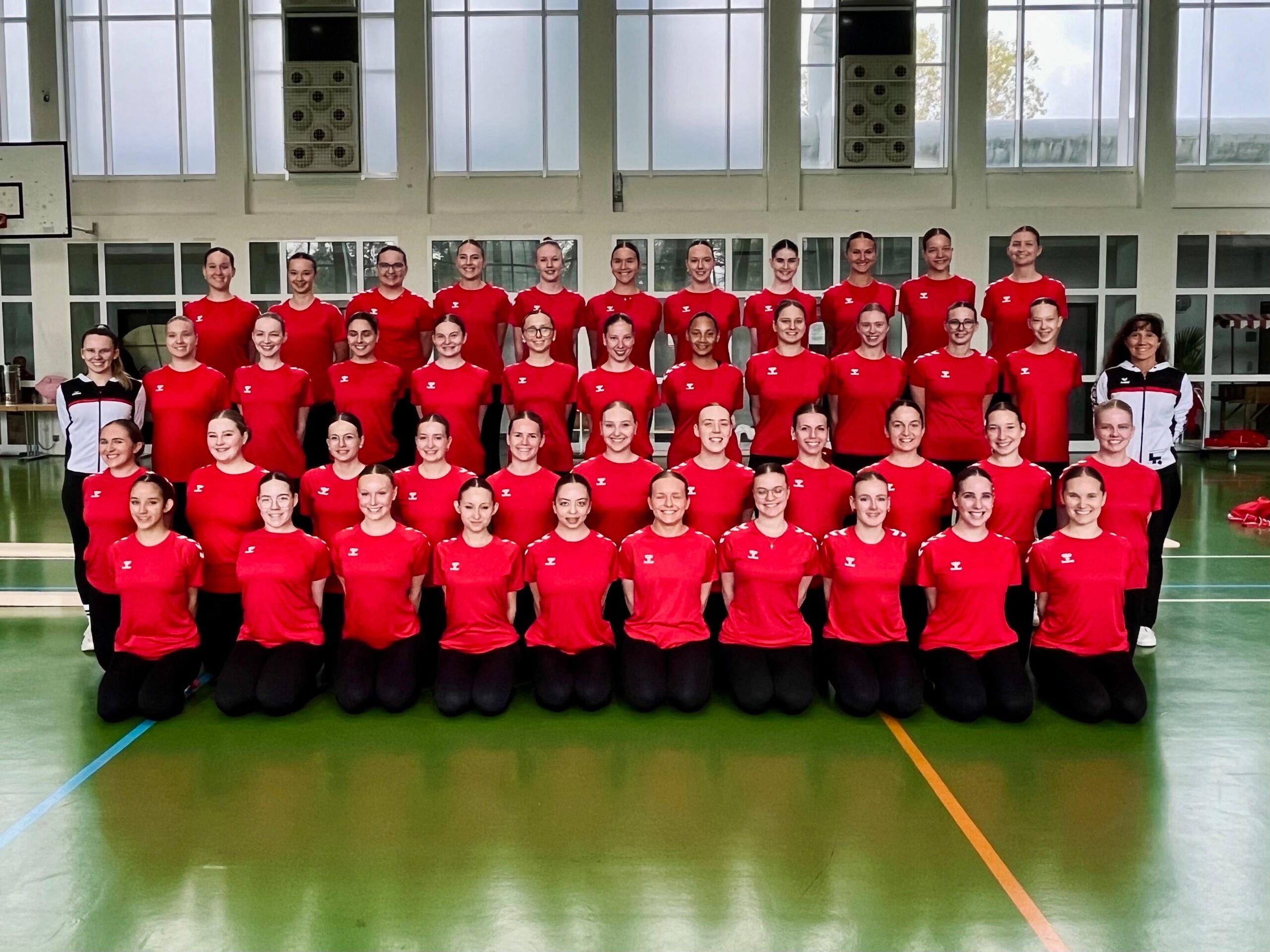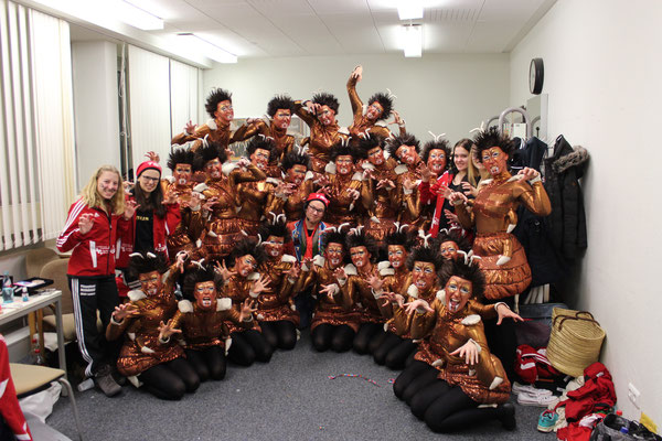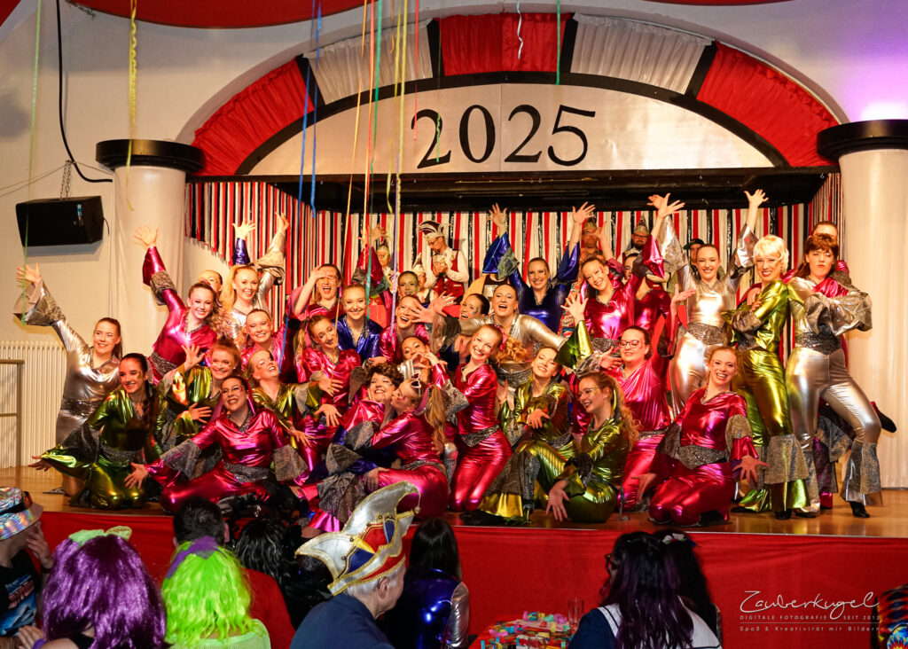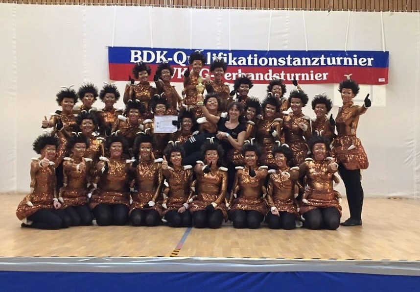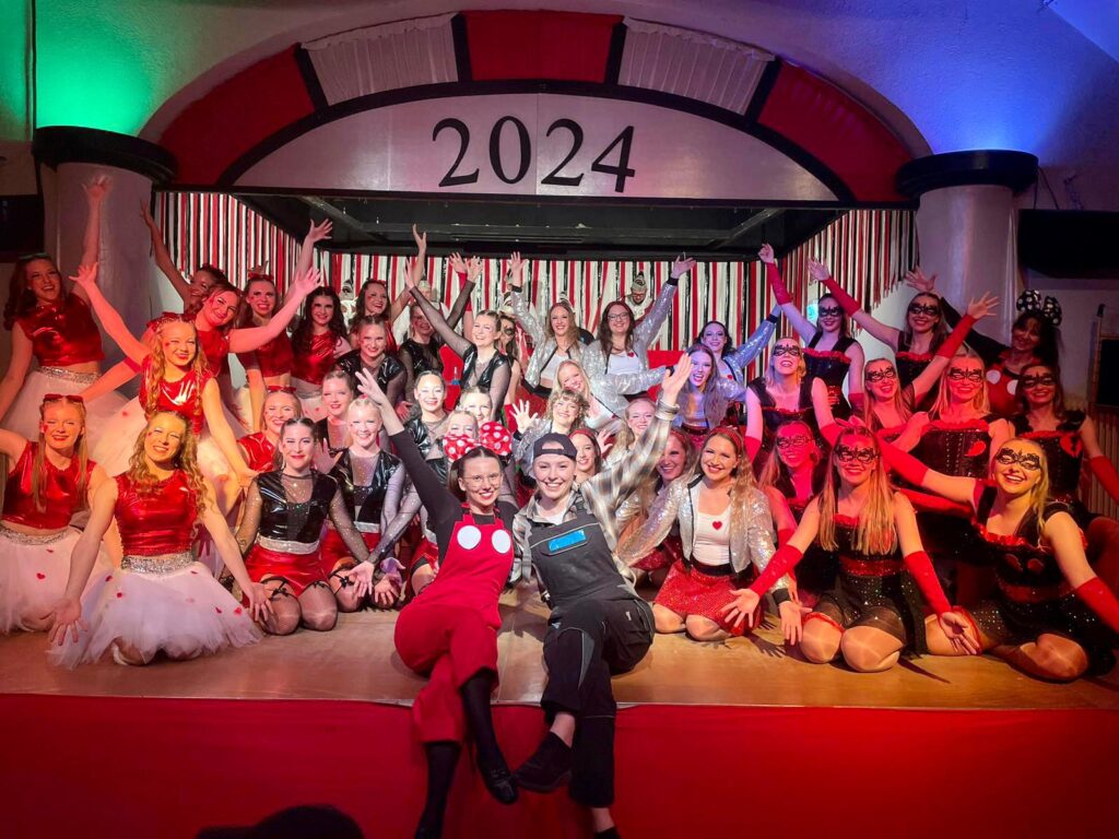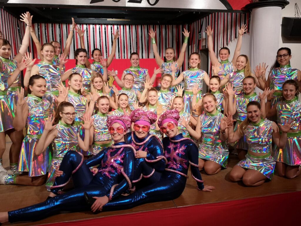 Wir starten in der Altersklasse Ü15 – das bedeutet: Alle ab Jahrgang 2010 und älter sind herzlich willkommen, nach oben gibt es keine Altersgrenze. Dieses Jahr besteht unsere Gruppe aus 52 Tänzerinnen.