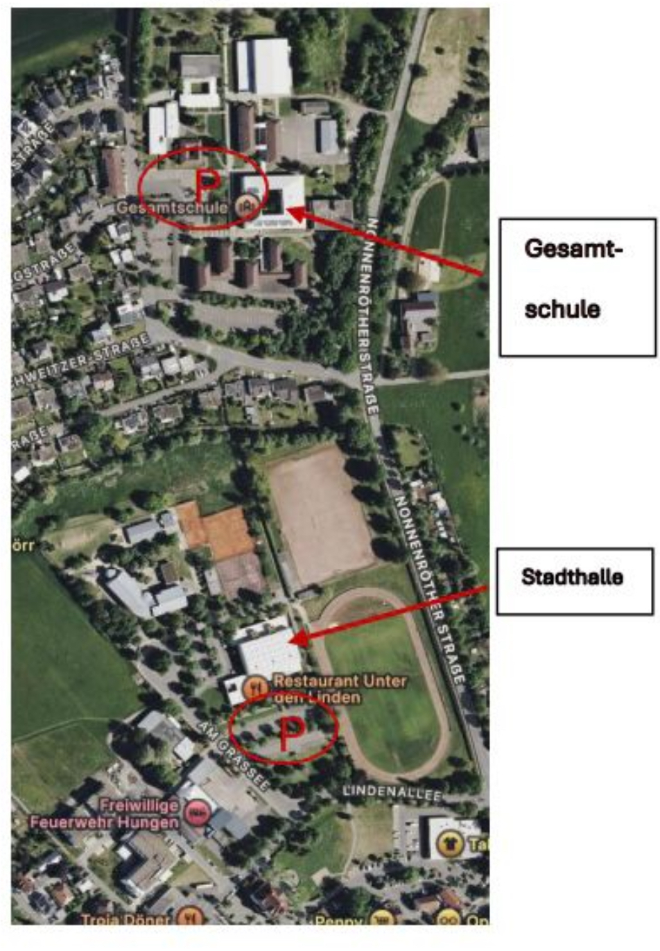- Direkt an der Schäferstadthalle, Am Grassee 10, 35410 Hungen